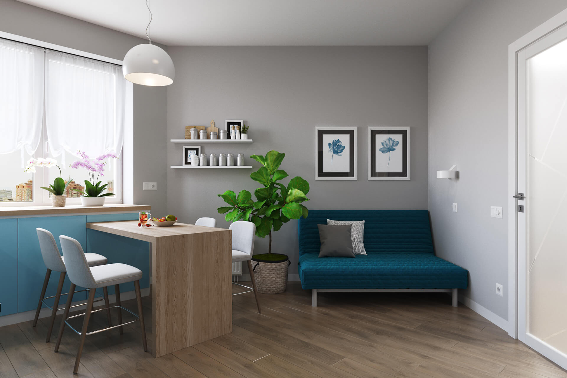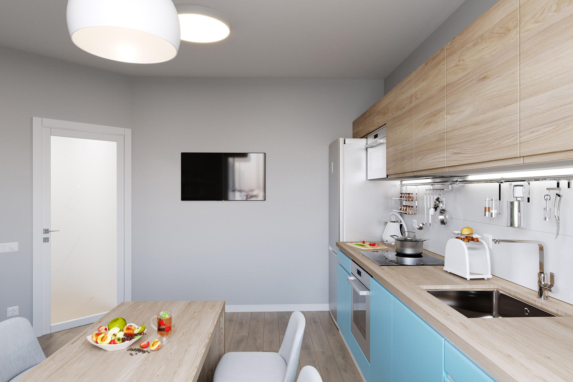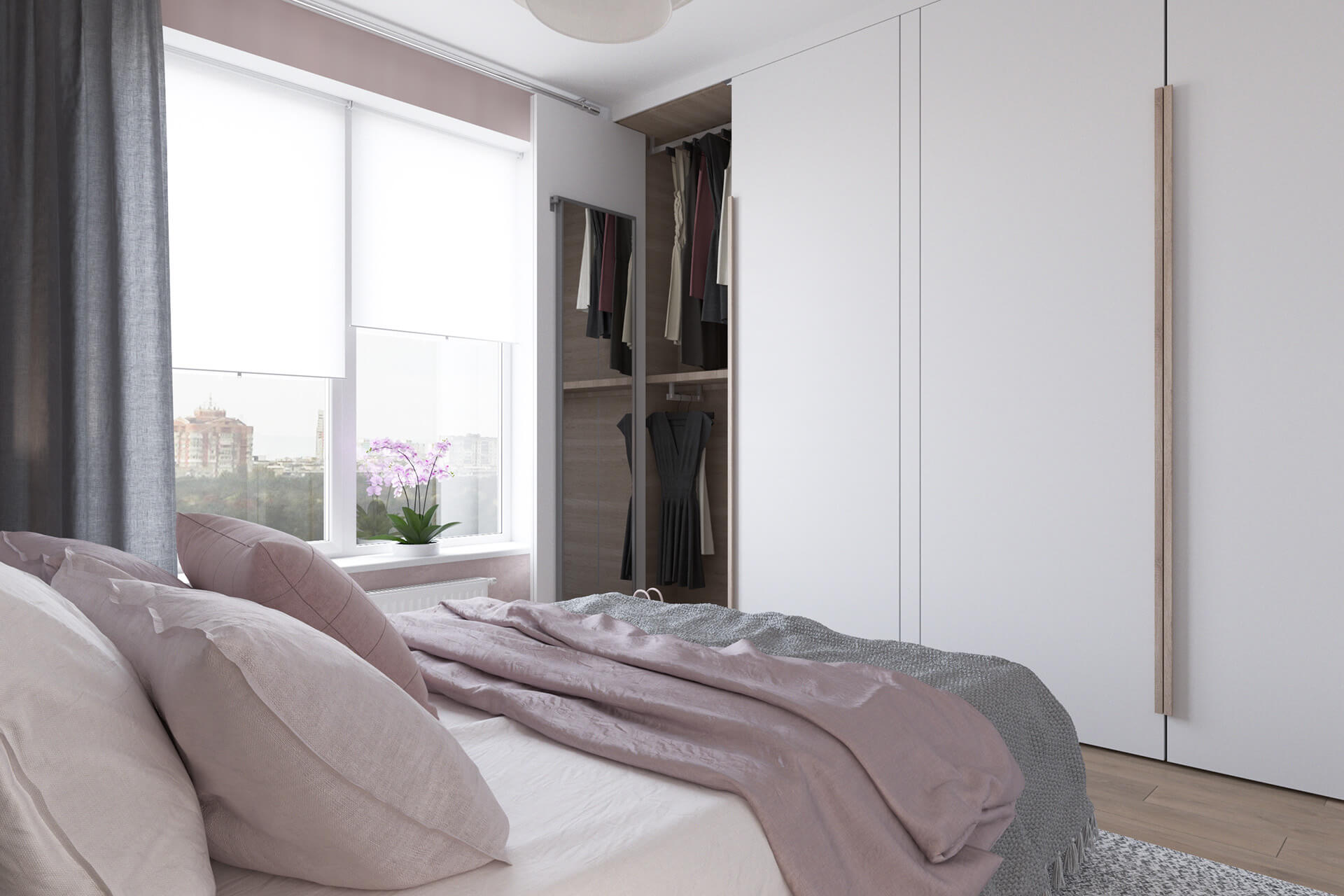 Основна вимога-створити сучасну, затишну і практичну квартиру для сім’ї з двома дівчатками. Максимально зберегти початкове планування і зробити недорогий, але якісний ремонт. Кожен квадратний метр був використаний з максимальною користю – лоджія перетворена в робочу зону з квітником, у спальні реалізована містка гардеробна шафа, кухня-їдальня містить обідню зону і зону відпочинку.