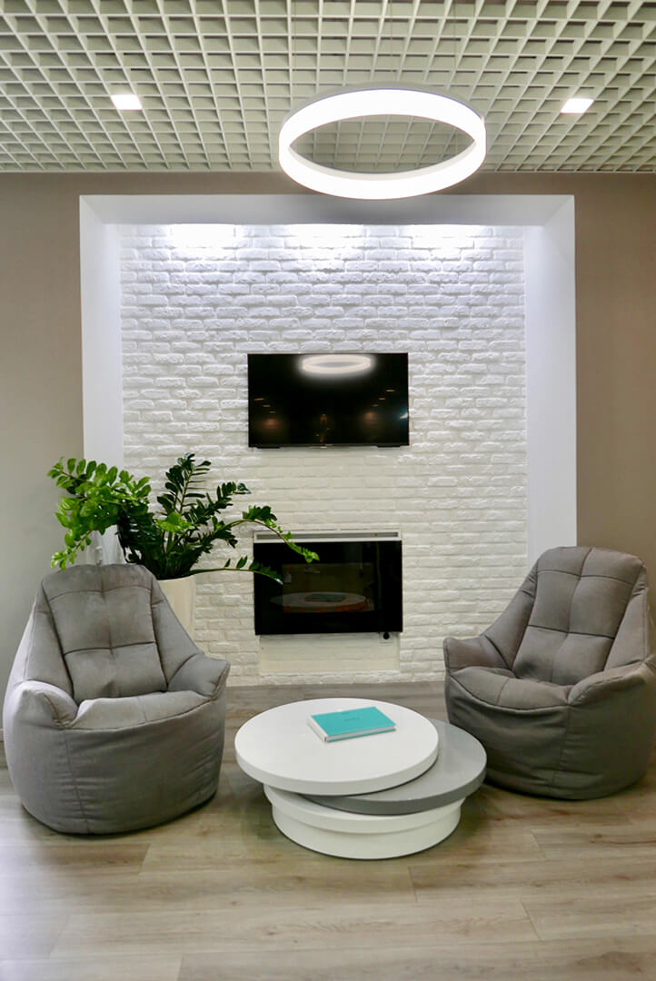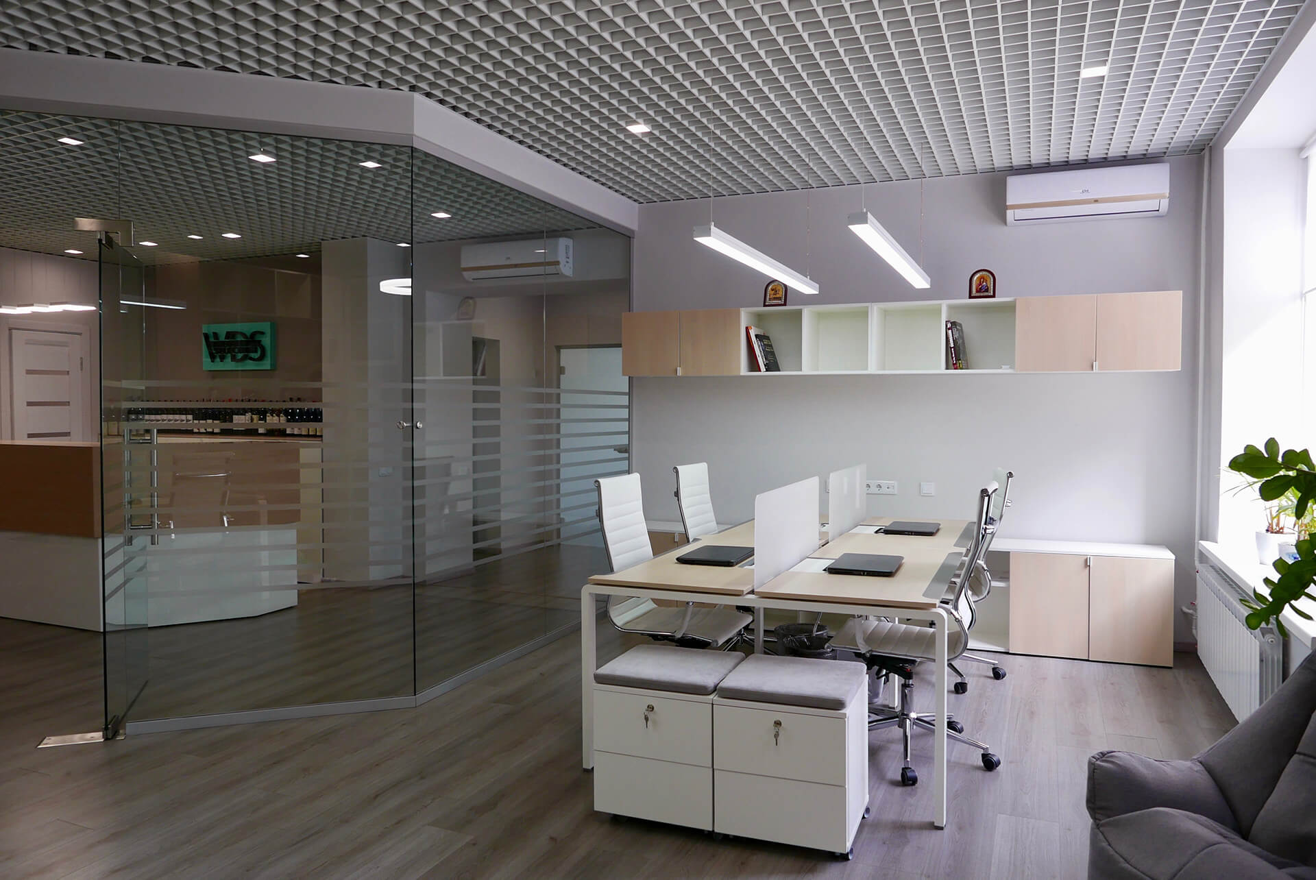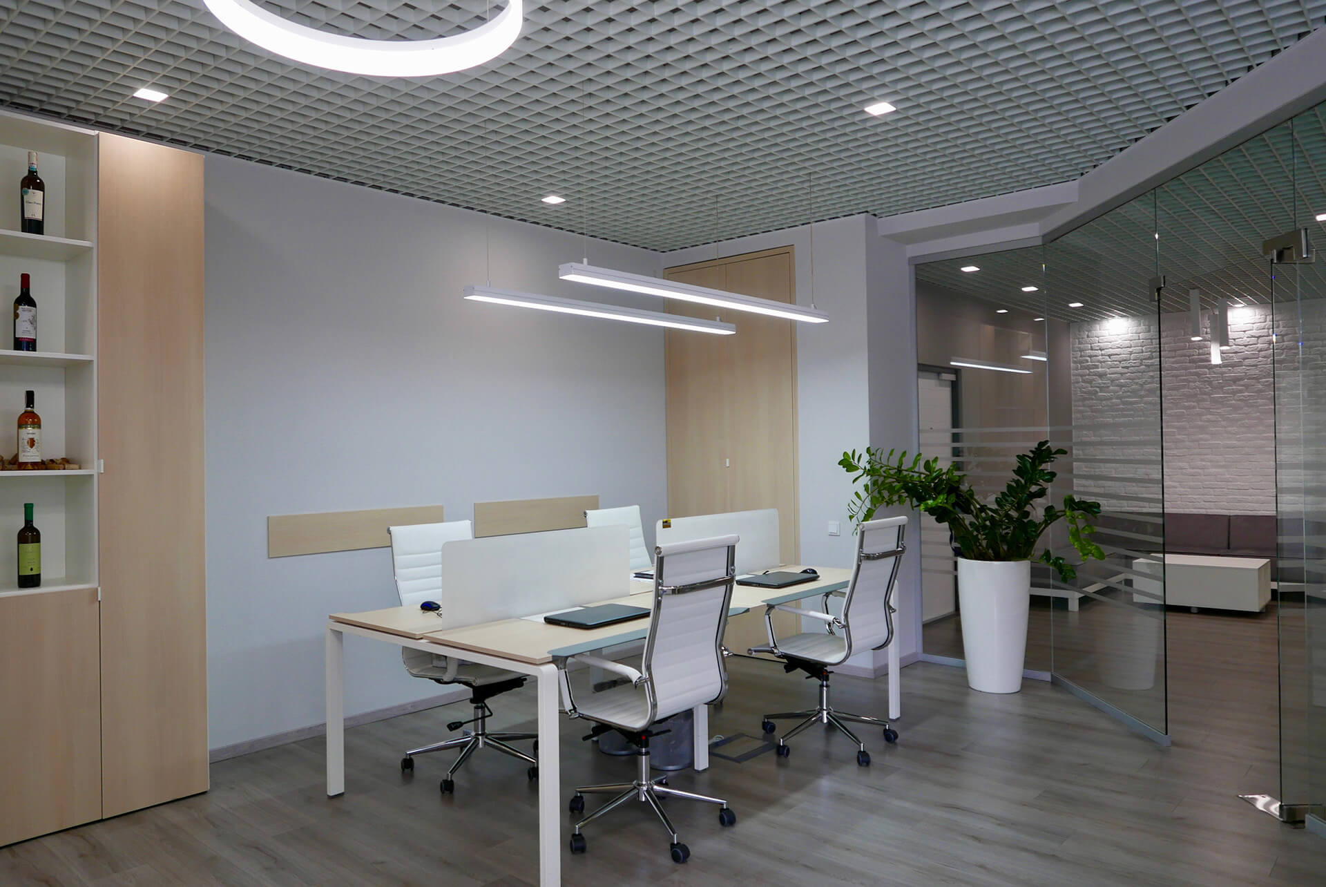 Основним завданням при створенні інтер’єру було з темного приміщення з маленькими кімнатами зробити відкритий просторий і світлий офіс, що відображає культуру і дух компанії. Особливістю стала лаунж-зона з каміном і винним баром для неформального спілкування співробітників і дегустацій з клієнтами. Ремонт був виконаний в найкоротші терміни і в рамках мінімального бюджету.